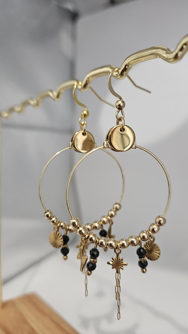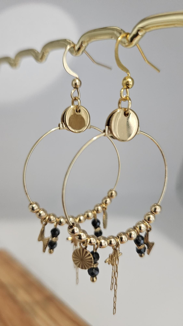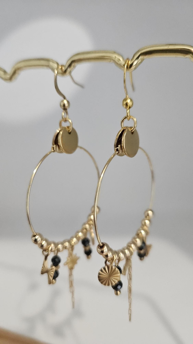Boucles d'oreilles acier inoxydable, perles naturelles (Agathe noire et hématite),pendentifs ⭐️