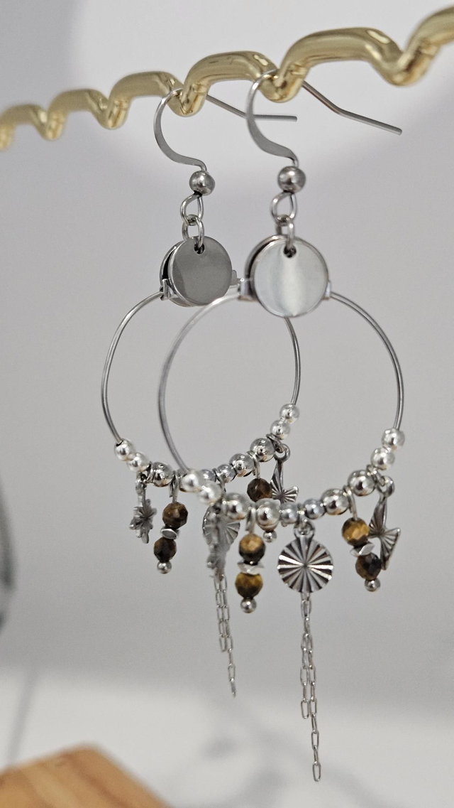 Boucles d'oreilles , acier inoxydable, perles naturelles, pendentifs ⭐️