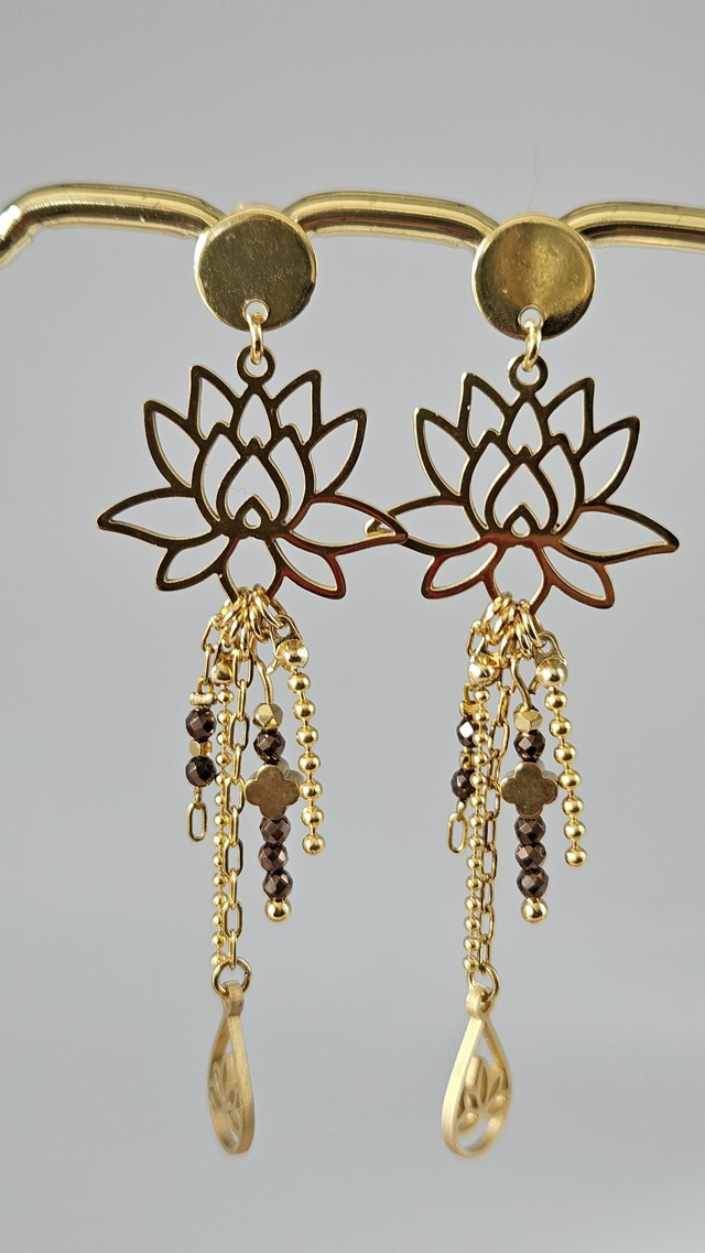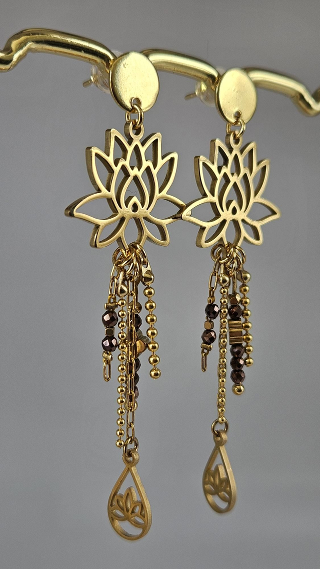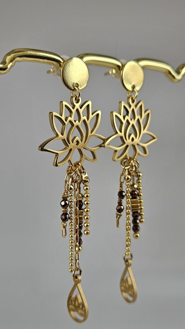 Boucles d'oreilles fleurs de lotus, acier inoxydable doré, perles naturelles 🌸