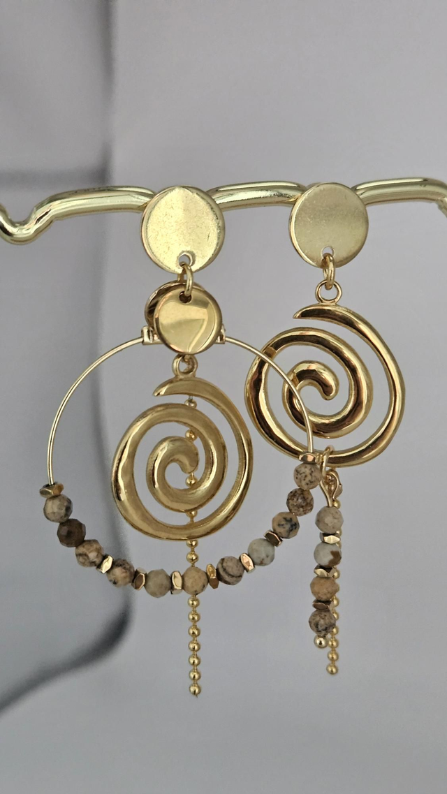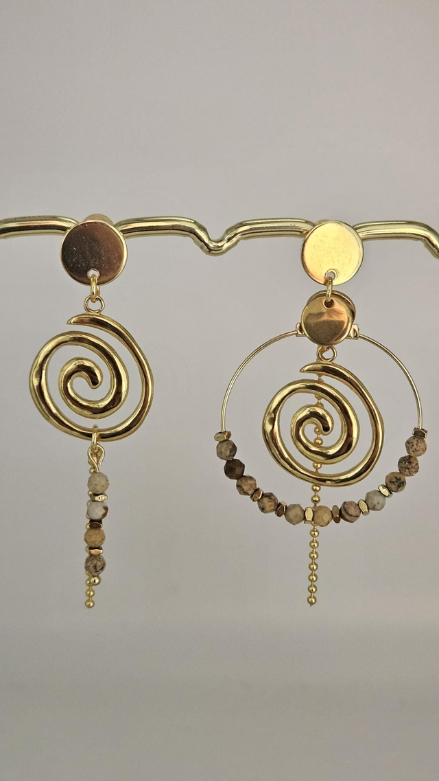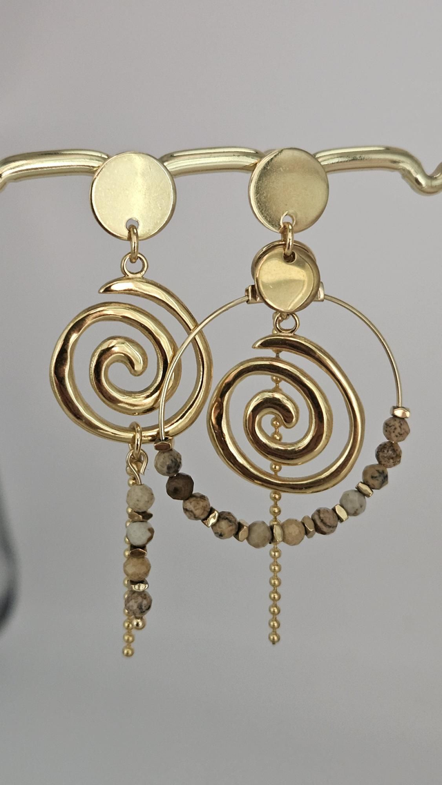 Boucles d'oreilles asymétriques, acier inoxydable doré, perles naturelles, pendentif tourbillon ⭐️