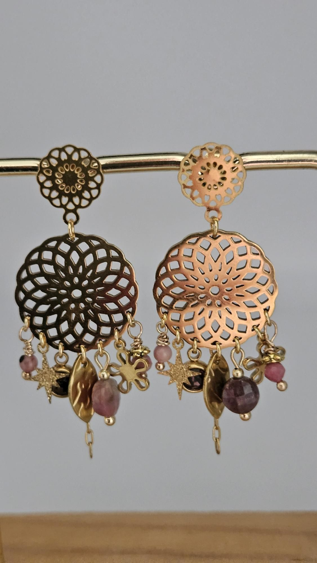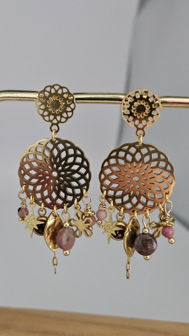 Boucles d'oreilles, acier inoxydable doré, perles naturelles, pendentifs ⭐️