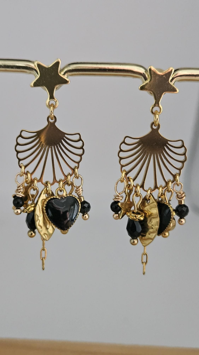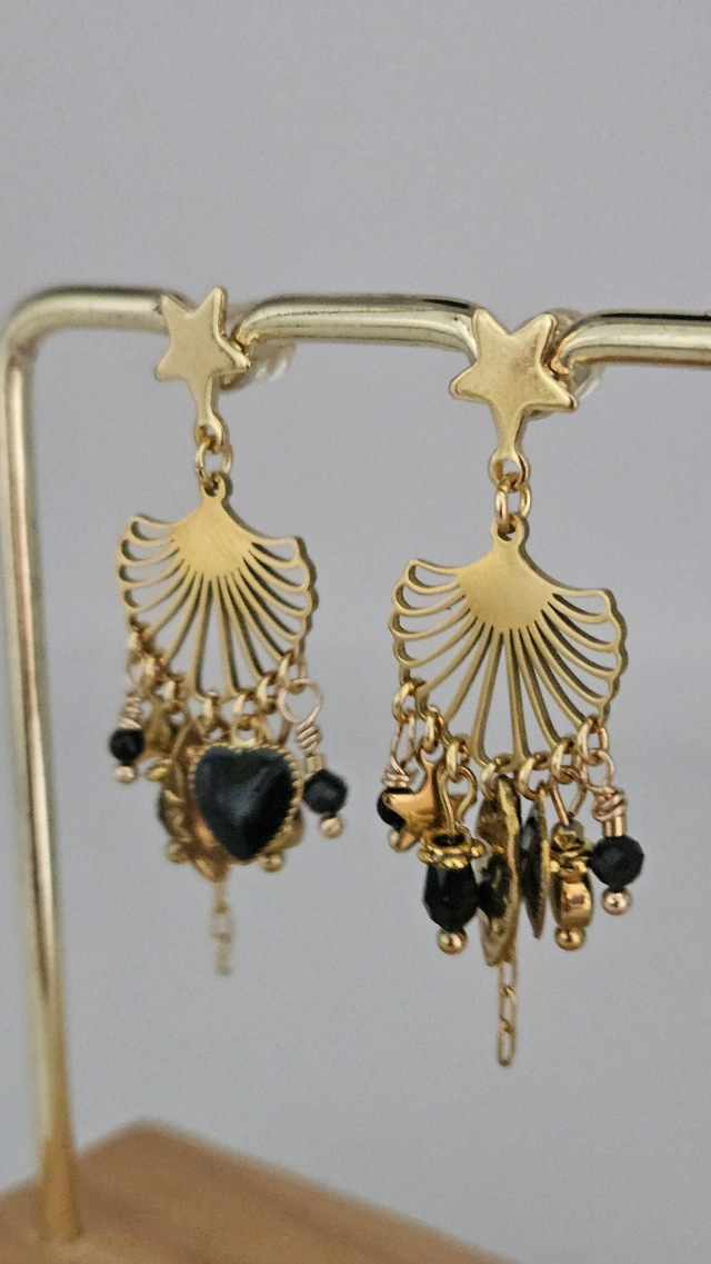 Boucles d'oreilles, acier inoxydable doré, perles naturelles, pendentifs ⭐️