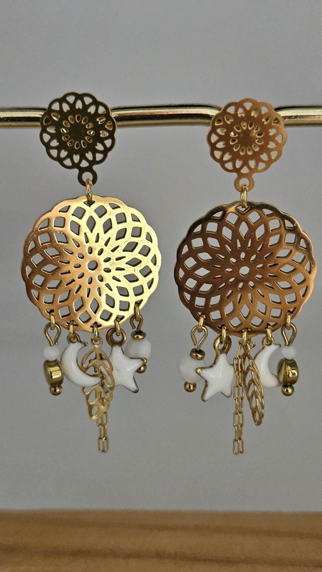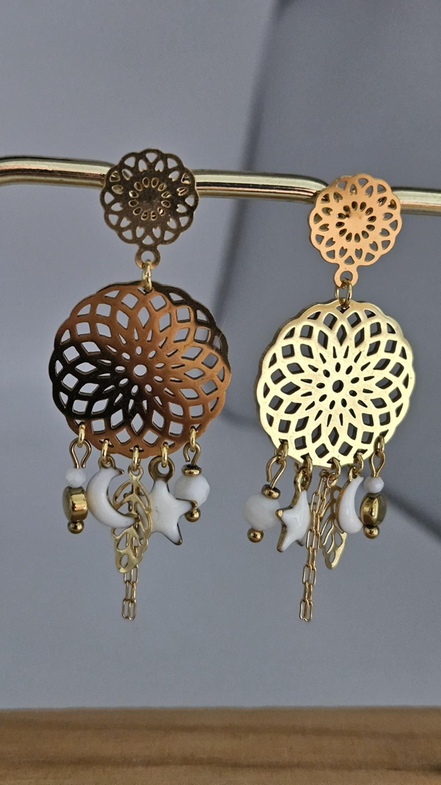 Boucles d'oreilles, acier inoxydable doré, perles naturelles, pendentifs ⭐️